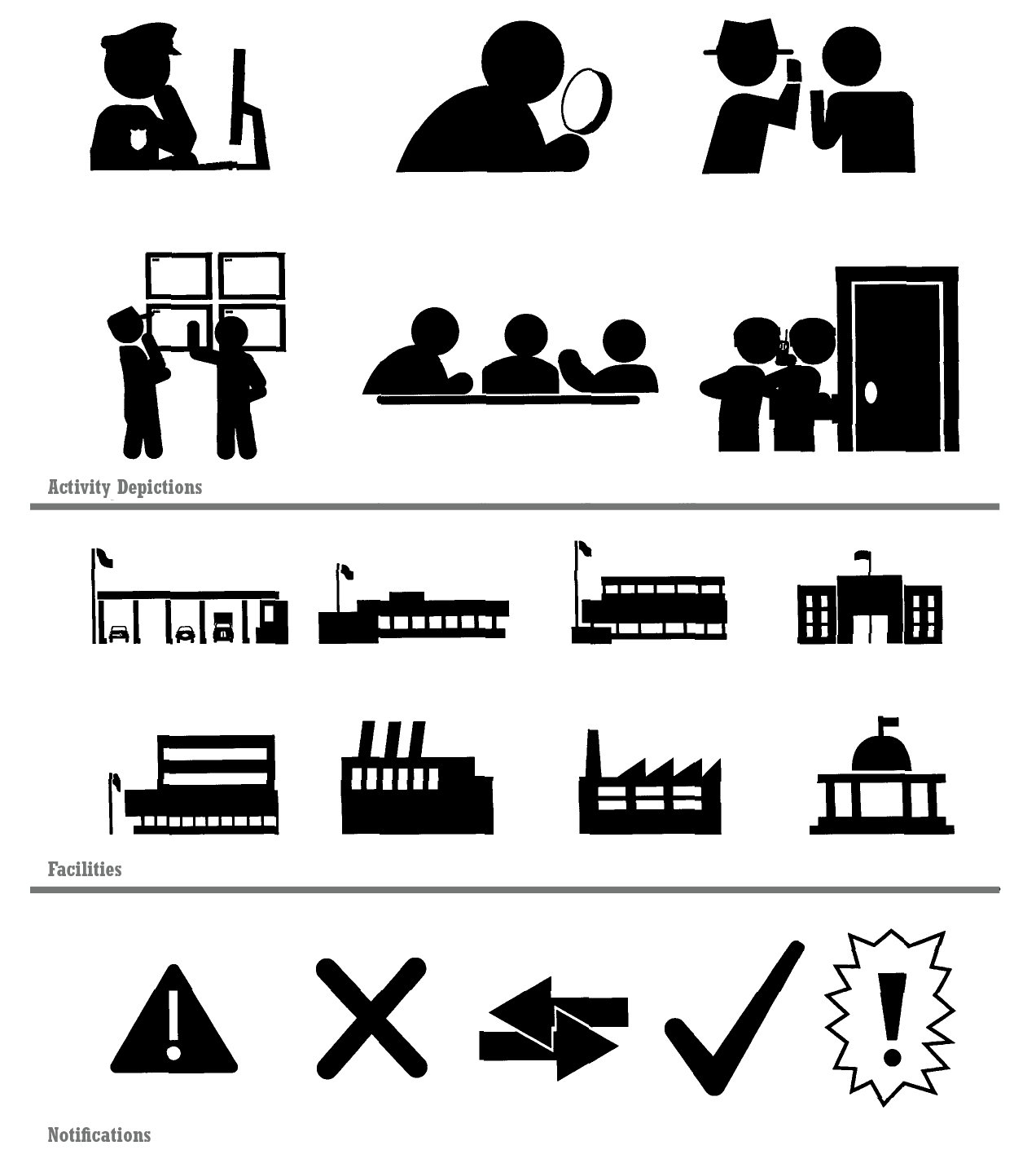 One of the most common requests I got while working at The MITRE Corporation was for assistance with developing presentations. Understandably, as a company that works on contracts with the government, MITRE was required to constantly update and inform clients about how progress was going, what new features would be added, and so on. These internal requests often came tinged with frustration that they lacked the visual resources through built-in libraries of Visio and PowerPoint to accurately tell their story. So, as I helped develop these client presentations, I began developing a vast library of custom, specialized icons to represent different facets of complex processes. These icons would appear in presentations and, in turn, clients would appreciate the specificity and accuracy of system depictions, leading to repeat work for me and my team. More importantly, though, these simple figures would tell the story the internal requests wanted to tell.